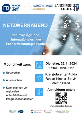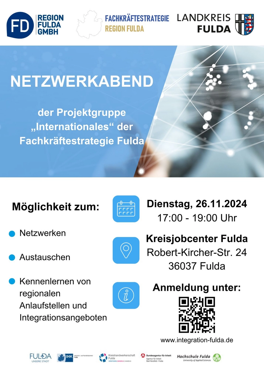 Viele Informationen sind bereits auf der Website www.integration-fulda.de abrufbar. Da der persönliche Kontakt aber oftmals vieles erleichtert und ein gutes Netzwerk ein wichtiger Baustein in der erfolgreichen Integration ist, möchten wir Sie zu unserem Netzwerkabend - Regionale Anlaufstellen und Integrationsangebote recht herzlich einladen.