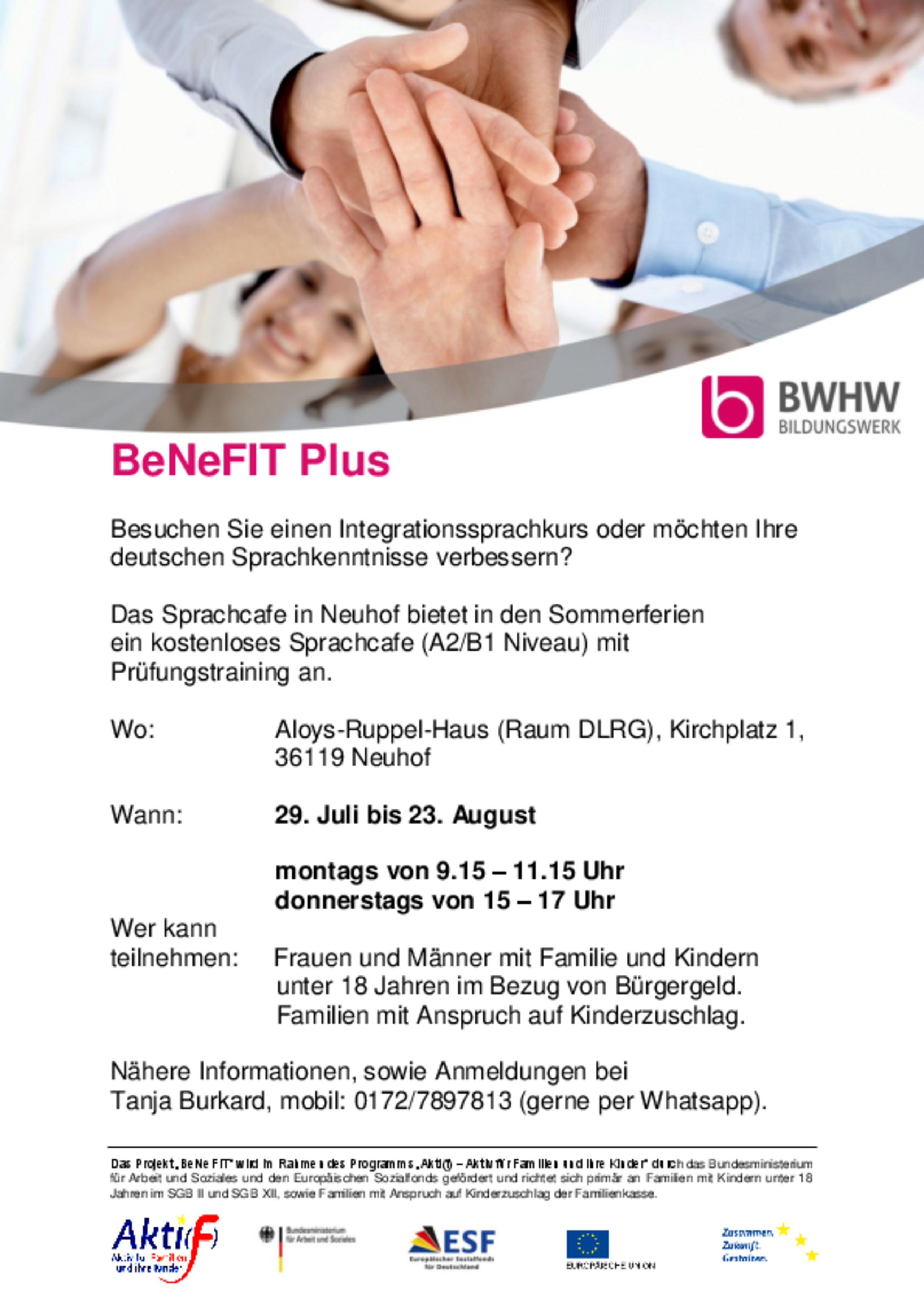 kostenloses Sprachcafé in Neuhof (A2 / B1 Niveau) mit Prüfungstraining