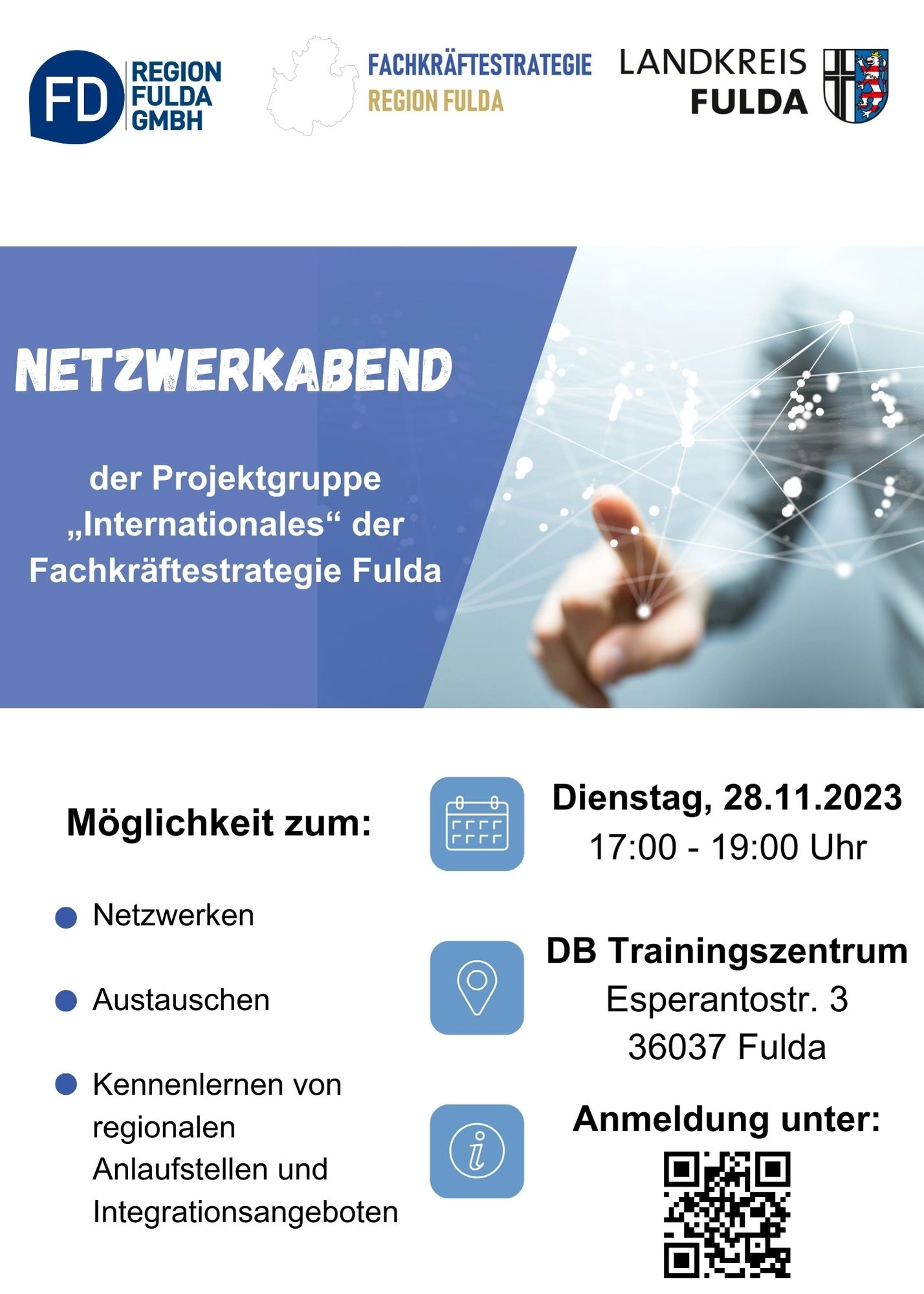 Am 28.11.2023 findet ein Netzwerkabend - Regionale Anlaufstellen und Integrationsangebote statt.