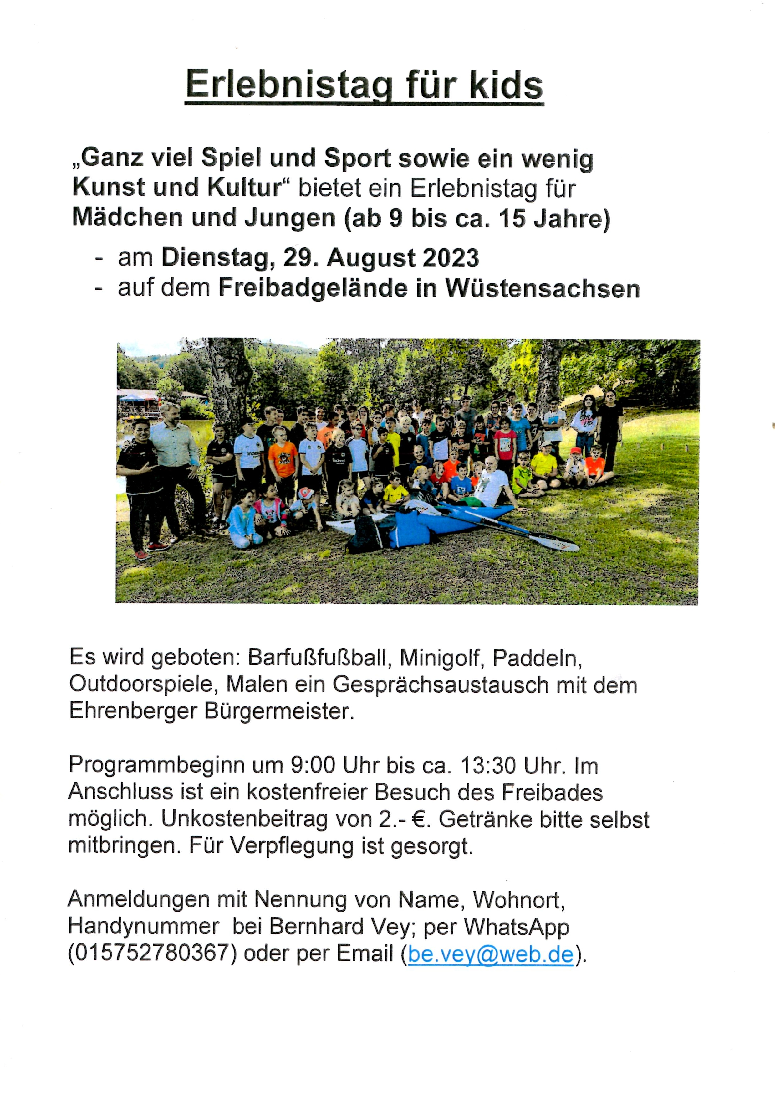 Spiel, Spaß, Sport und Kultur für Kinder von 9 - 15 Jahren in Wüstensachsen